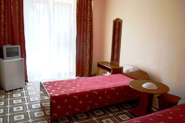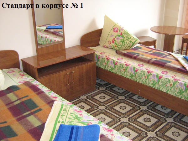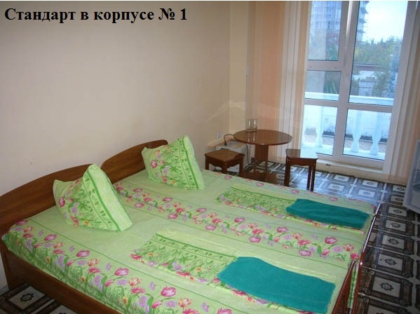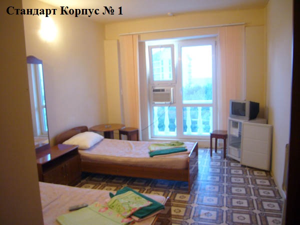 2-х местные номера Стандарт ЮГ (номера на южную, солнечную сторону, с видом на бассейн, из большинства номеров, расположенных на верхних этажах, открывается вид на море). Во всех номерах: две раздельные кровати, душ, туалет, ТВ, холодильник, кондиционер, балкон, площадь номеров 18 м.кв. Номера после ремонта.