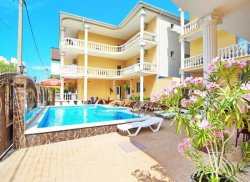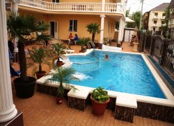 ИНФРАСТРУКТУРА: Территория отеля огорожена и снабжена видеонаблюдением. Во внутреннем дворике обустроена площадка для отдыха с подогреваемым бассейном с детским отделением и шезлонгами, мангал с зоной отдыха, беседка, сейф у администратора. Гладильная доска + утюг, Wi-Fi. Недалеко от границ отеля расположены магазины, рынки, кафе и рестораны.