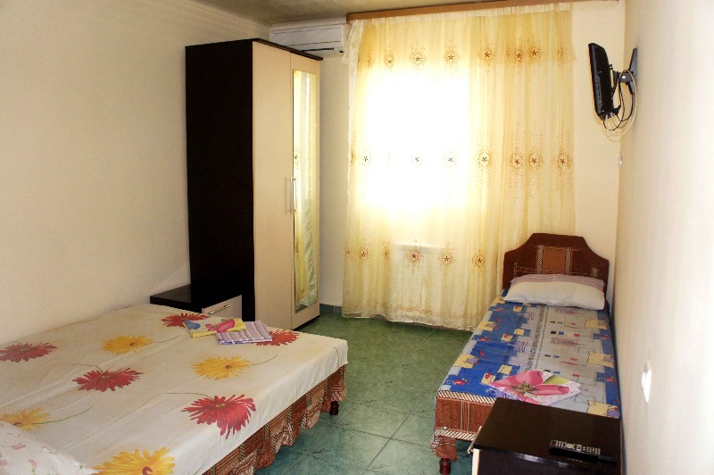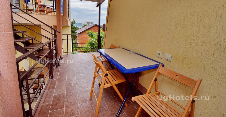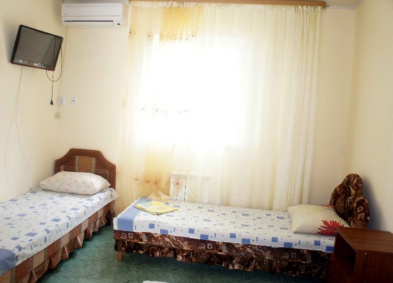 ПРОЖИВАНИЕ: 3-х этажный корпус 2-х,3-х, 4-х местные номера стандарт со всеми удобствами. В каждом номере ТВ, кондиционер, холодильник, санузел, балкон общий – терраса. Для каждого номера на балконе стол со стульями.