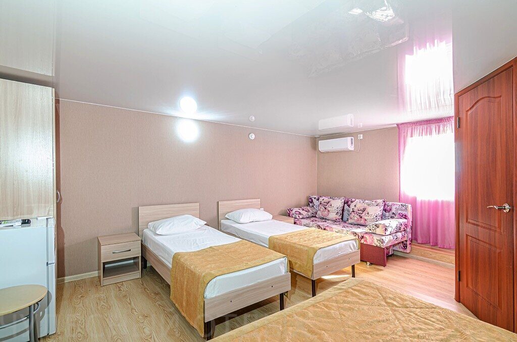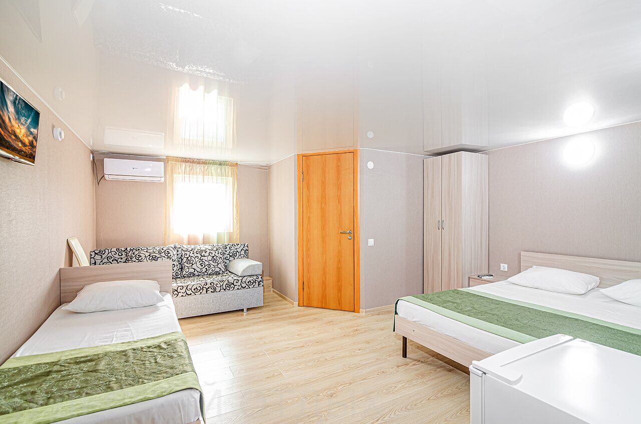 Характеристика номеров: Уютные номера гостевого дома позволят Вам приятно провести отпуск - 2-3-4-5-6-ти местные номера "С удобствами" - В номерах: кровати, прикроватные тумбочки, шкаф для одежды, стул, зеркало. Из удобств: телевизор, холодильник, сплит-система.
