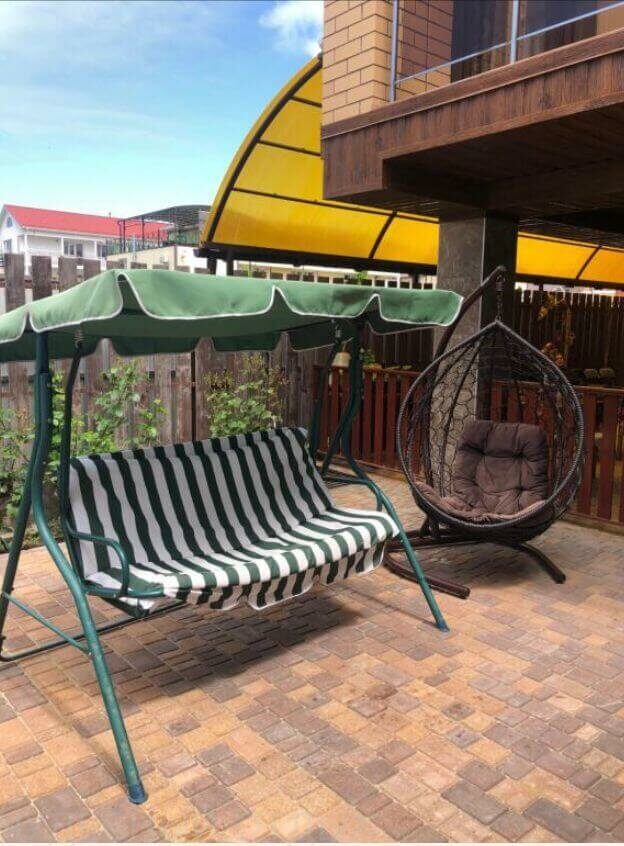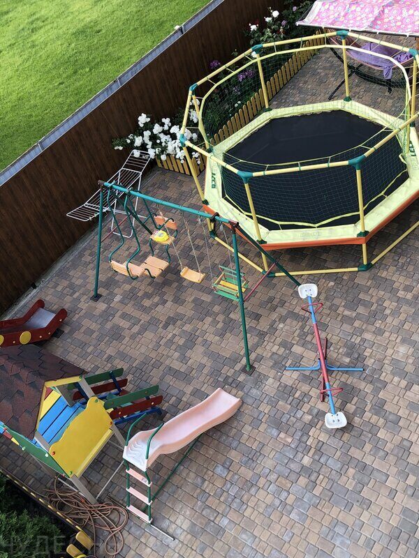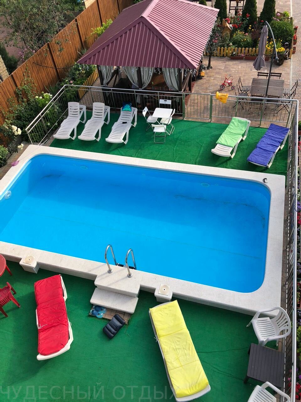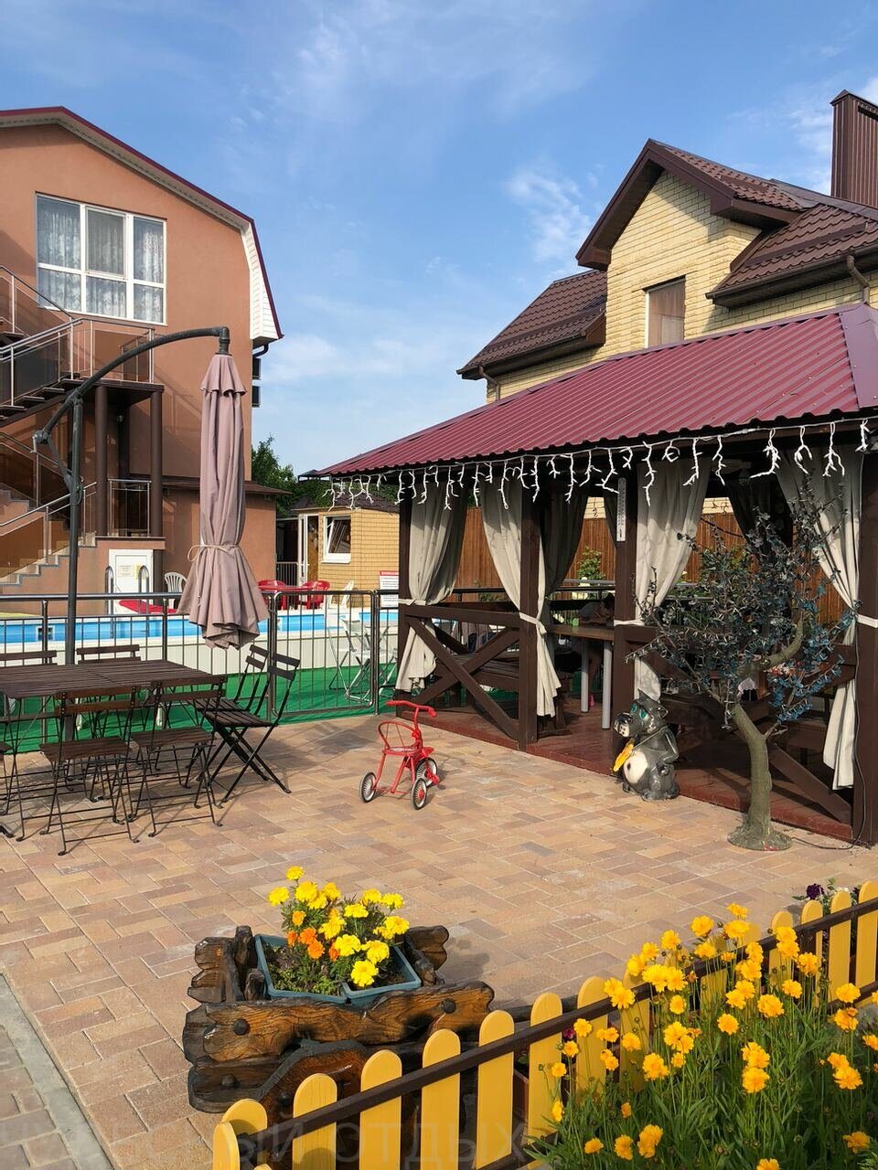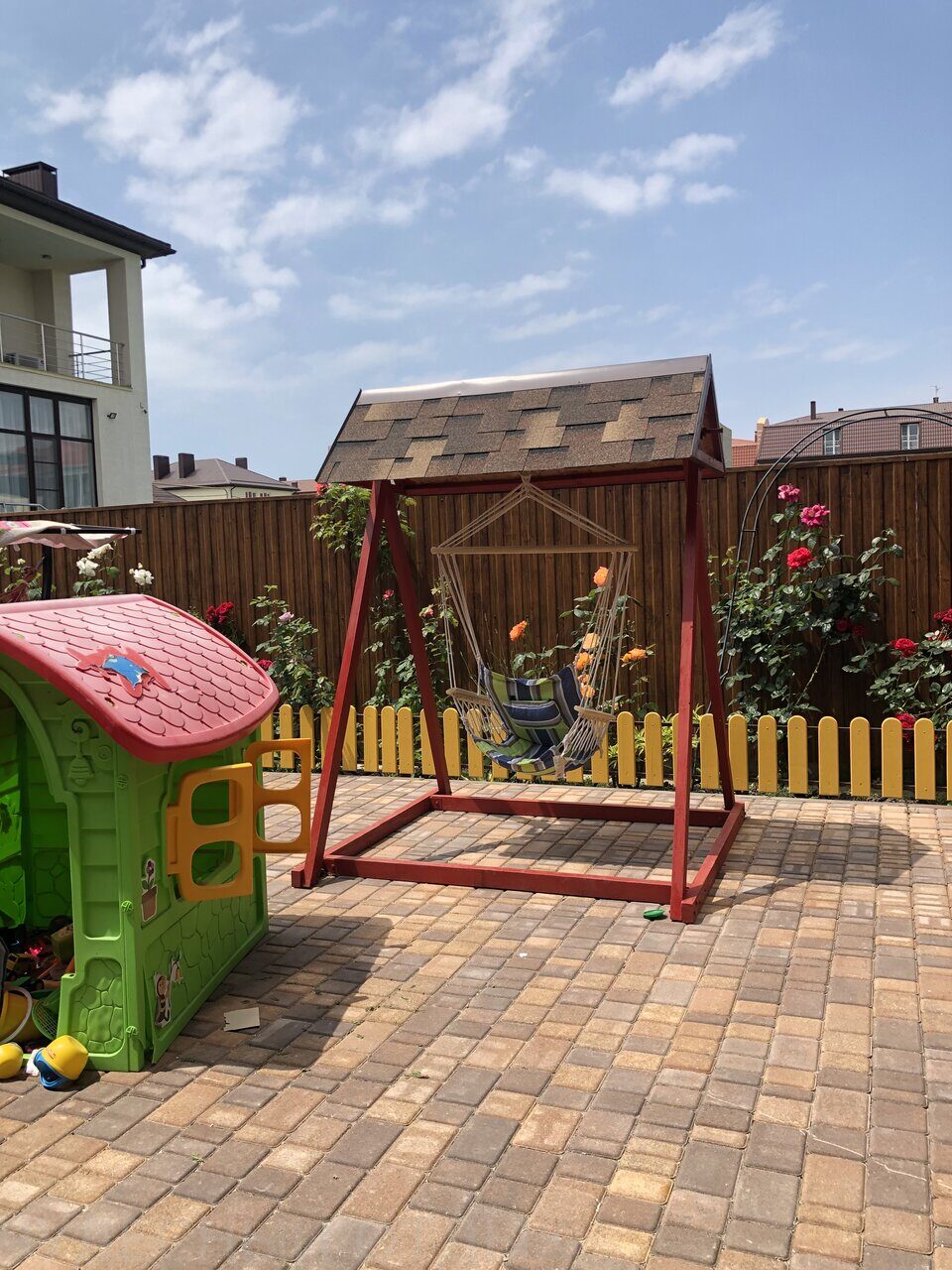 Описание: Обособленный двор с детской площадкой и батутом позволит Вам не беспокоиться о досуге Ваших детей. На протяжении всего пребывания в гостевом доме Вы сможете пользоваться открытым бассейном с шезлонгами, деревянными беседками, а теплыми вечерами использовать зону барбекю для приготовления ужина в кругу семьи или друзей.