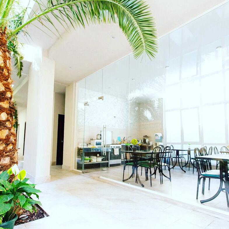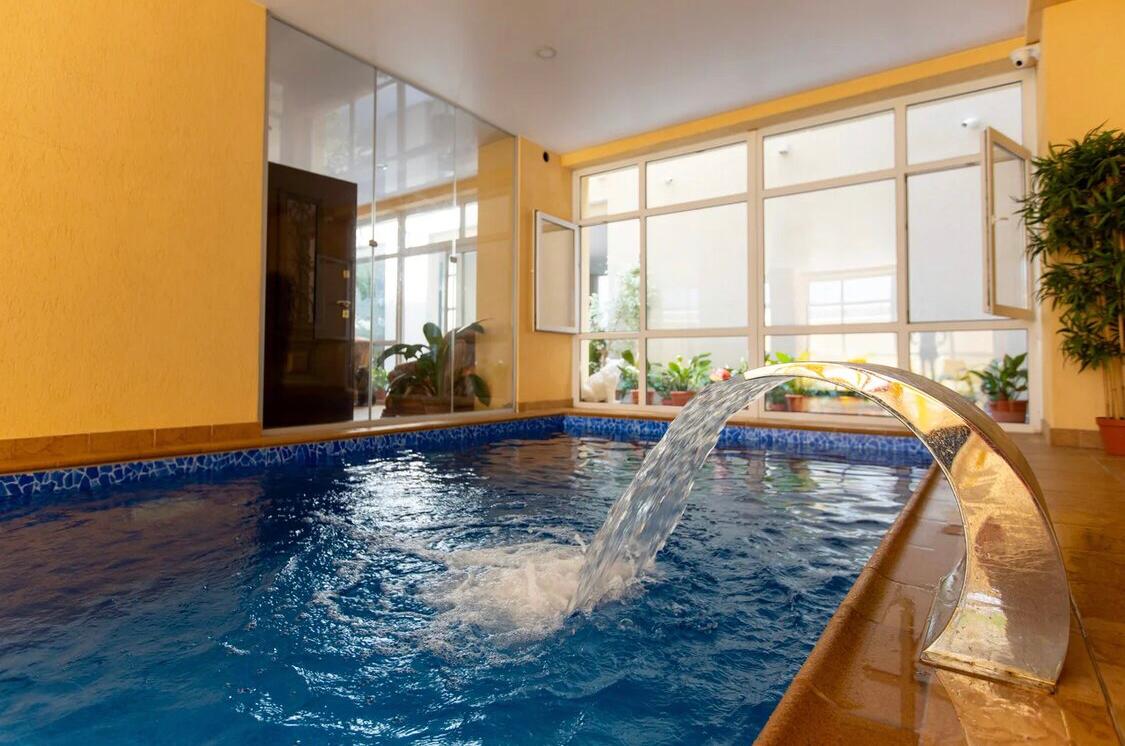 | Описание | Гостевой дом представляет собой 4-х-этажное современной здание. На этажах имеются террасы, где расположены места отдыха. На территории имеется бассейн с чистой водой, красивый, утопающий в зелени и цветах двор. |