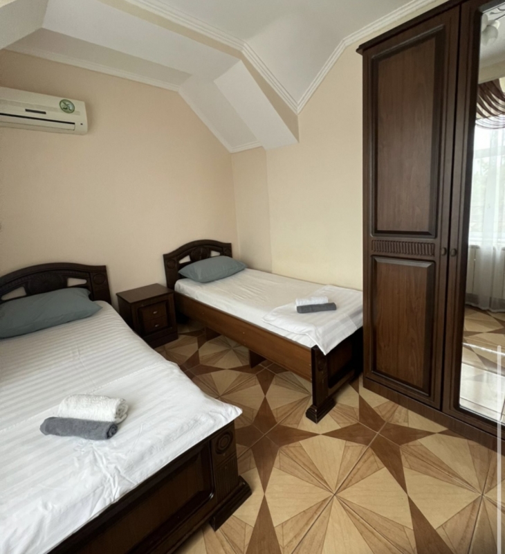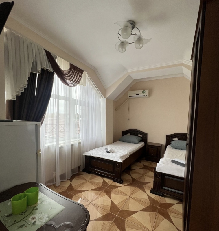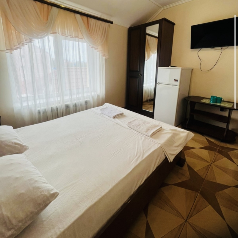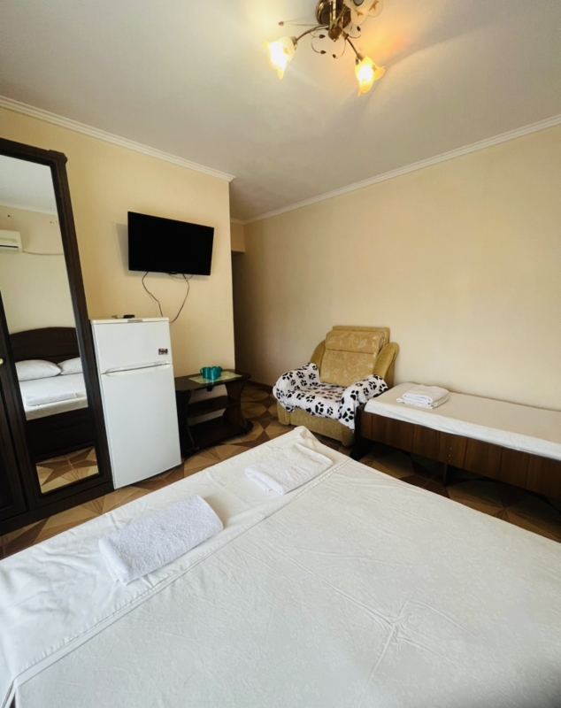 2,3,4-х местный номер "стандарт" с балконом и без оборудован: две односпальные кровати (или одна двуспальная) удобная мебель, сплит-система, телевизор, холодильник, шкаф, стол, стул, санузел (душ, туалет, раковина). |