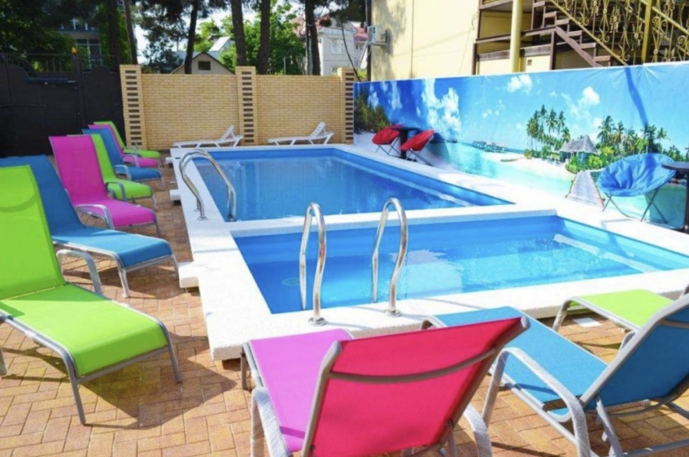 На всей территории имеется wi-fi. Открытый бассейн, шезлонги, детская площадка. Туристы от автостанции Кати Соловьяновой едут по адресу самостоятельно добираются до гостевого дома. |