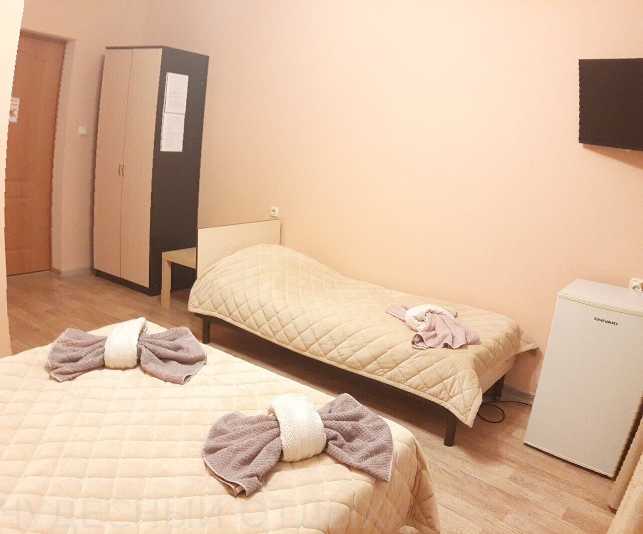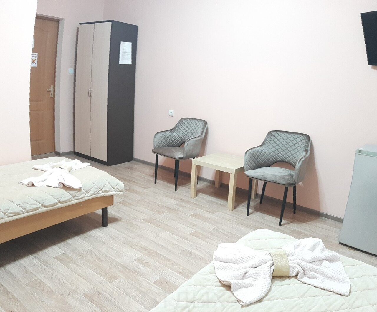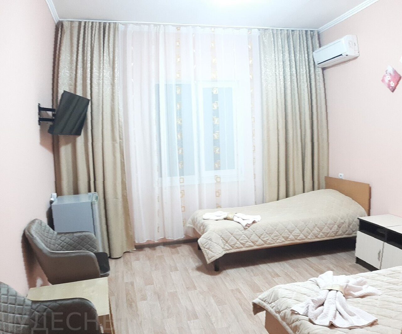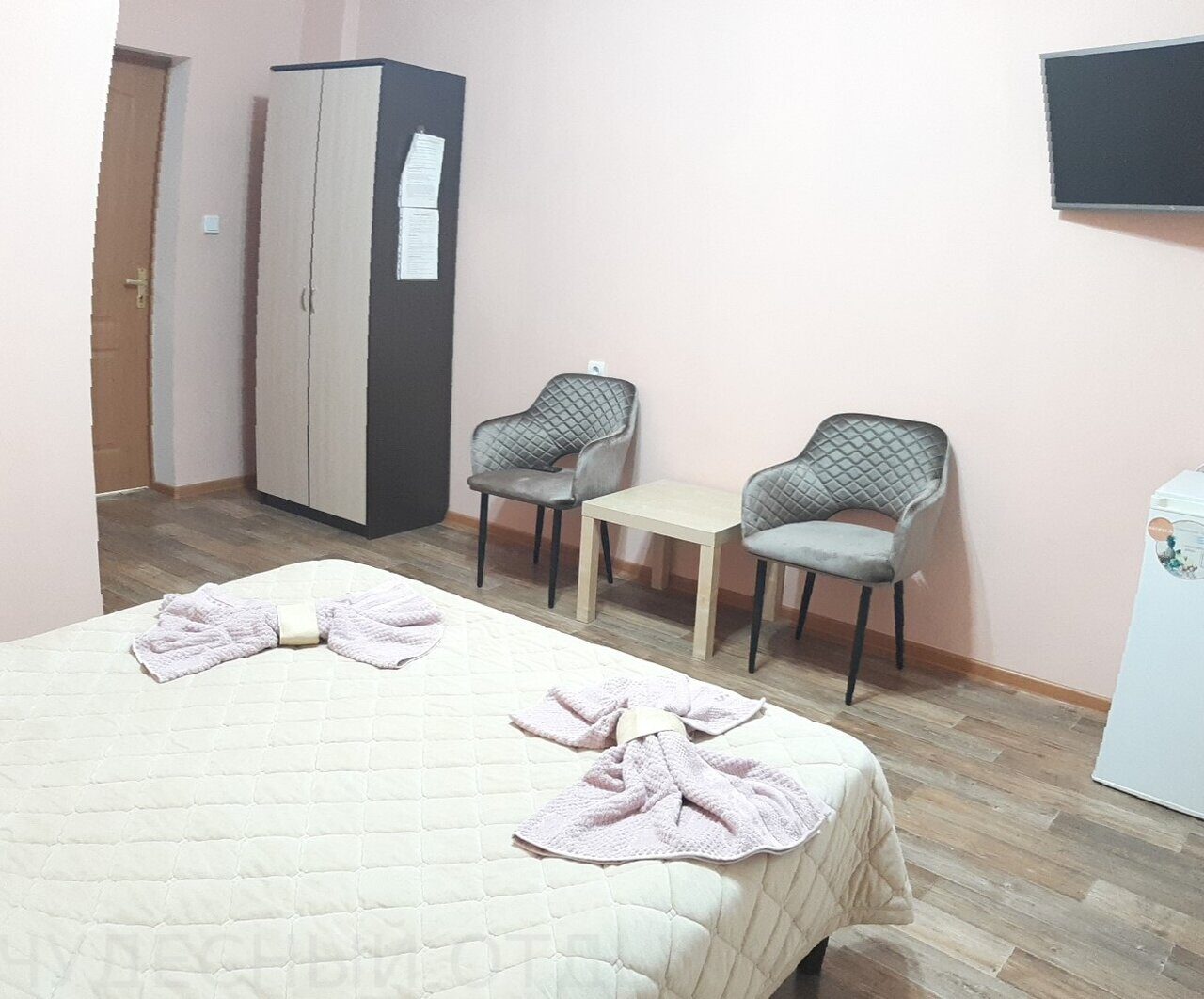 Характеристика номеров: 2-х, 3-х, 4-х местный «комфорт». Односпальные или двуспальная кровати, кресла, шкаф, стулья, прикроватные тумбочки, кондиционер, журнальный столик, душ, горячая вода, постельное бельё + полотенце. Сплит-система, телевизор, холодильник.