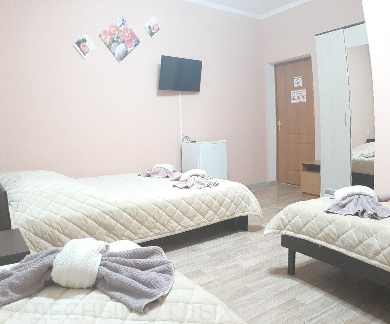 Описание: гостевой дом представляет собой новое, современное 2-х этажное здание, расположенное на благоустроенной озелененной территории. На территории расположена летняя беседка, мангал, детская площадка, бассейн.