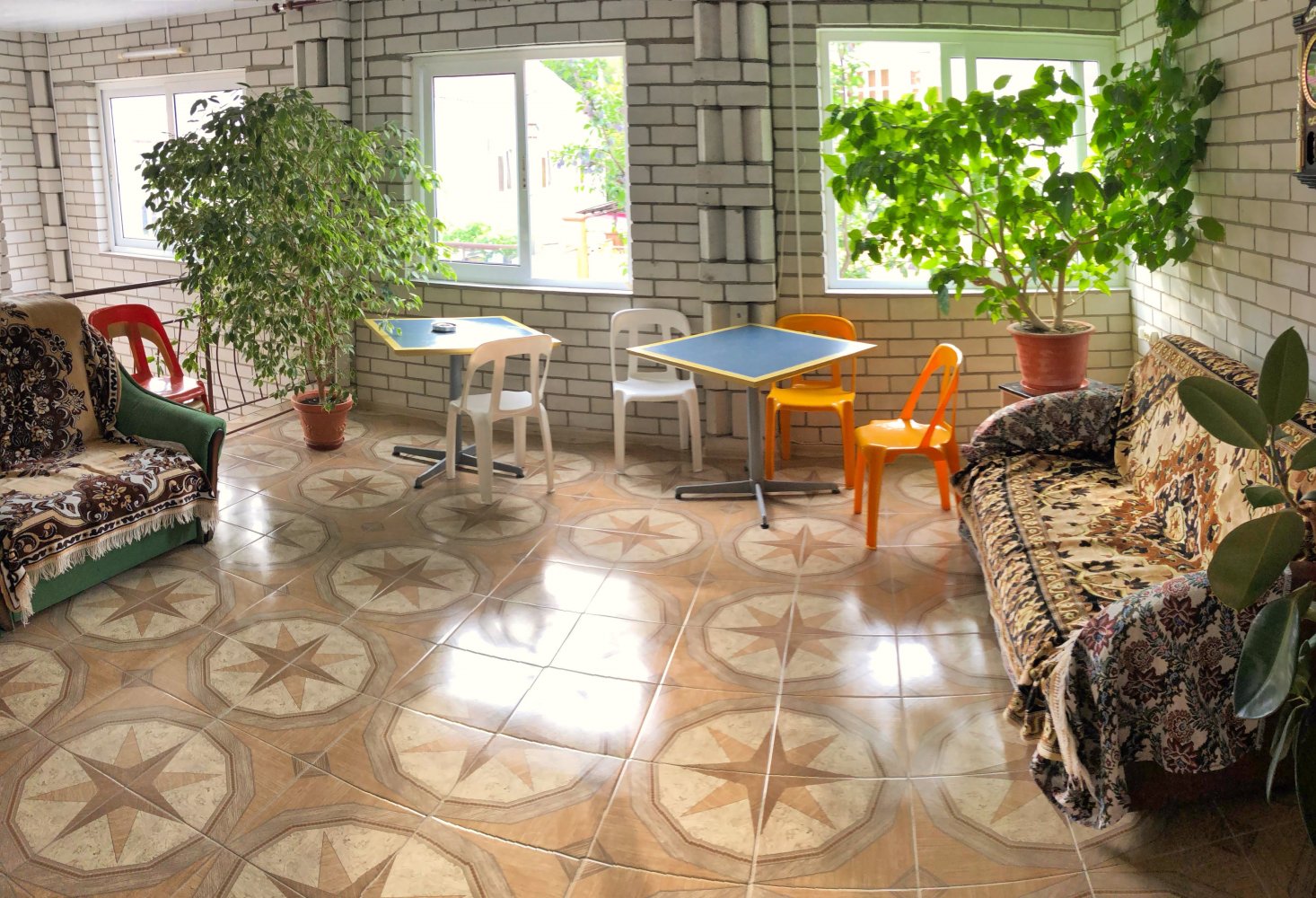 | Описание | Гостевой дом представляет из себя 2-х этажное здание с мансардой и отдельно стоящее 2-х этажное здание с номерами, где есть все удобства. Есть номера с кухнями. |