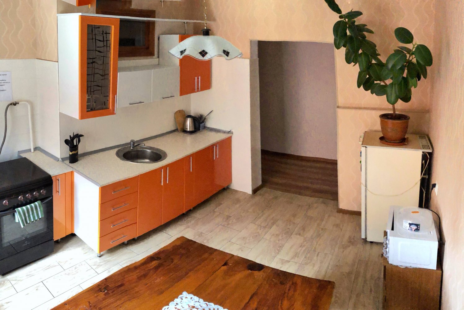 | Питание | Во дворе расположена общая кухня с необходимым набором посуды и газовой плитой для самостоятельного приготовления пищи. Во многих номерах имеются свои кухни. В непосредственной близости множество столовых, кафе. |