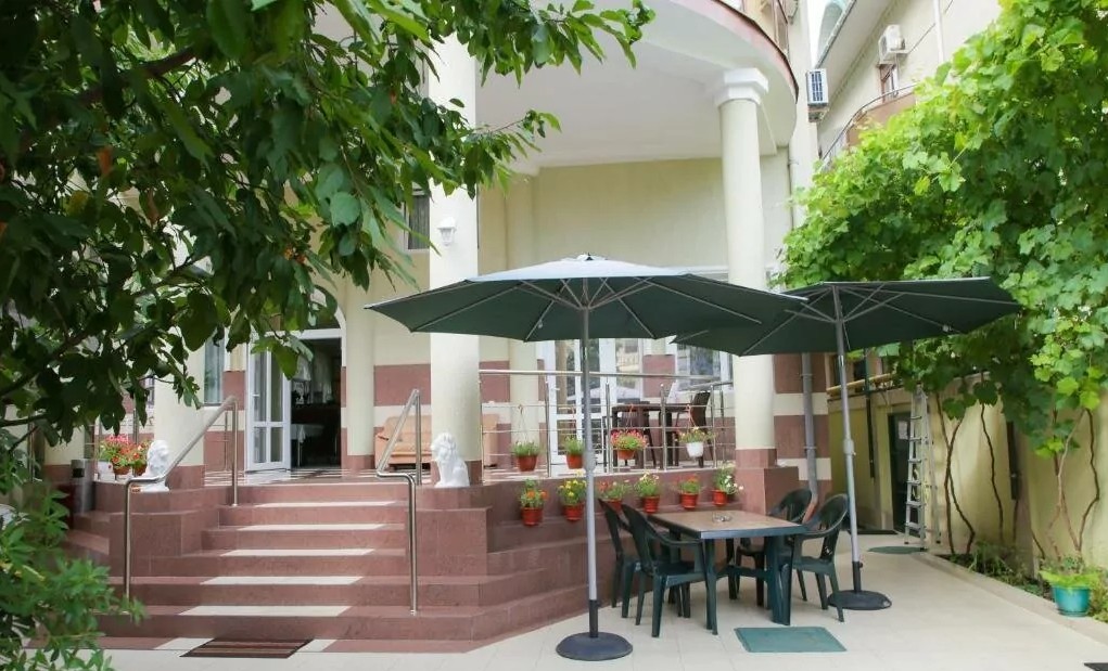 Описание: Благоустроенный двор располагаем местами для отдыха в окружении зеленых насаждений и цветов. Работает Wi-Fi (бесплатно).