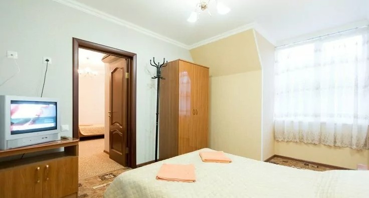 Характеристика номеров: Просторные номера оснащены всеми удобствами для комфортного отдыха. В номерах имеются: ТV, кровать, шкаф, обеденный стол со стульями, Wi-Fi, собственная ванная комната, в большинстве номеров есть балкон.