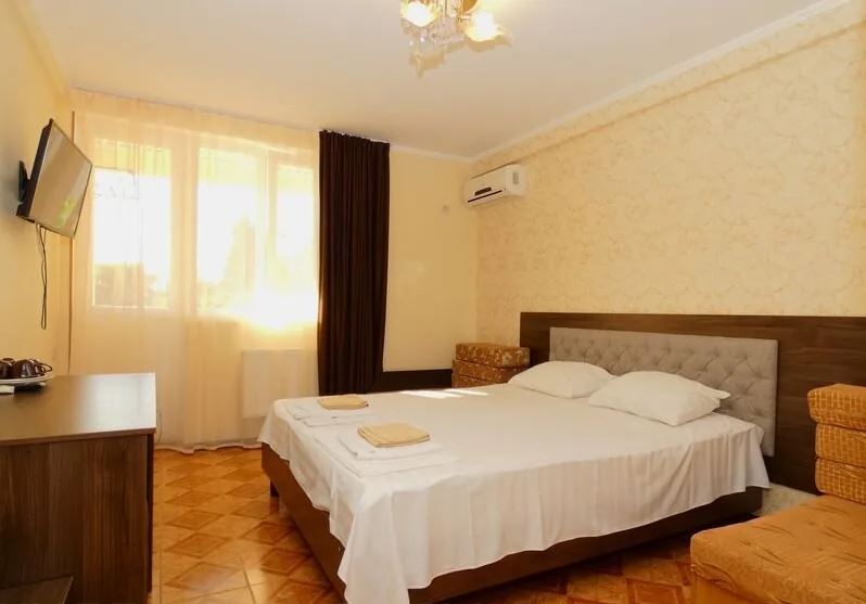 Характеристика номеров: 2, 3, 4-х местные комфортабельные номера оборудованы: кровати (в соответствии с категорией номера), шкаф, вешалка, зеркало, столик, кресло-кровать, интернет, TV, холодильник, кондиционер. В 3-х местном номере: 2-х спальная кровать и 1,5 спальная кровать. Горячее и холодное водоснабжение круглосуточно. гладильная доска, кулер - на этаже.