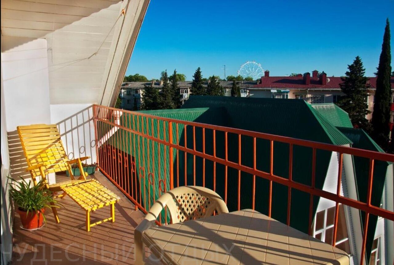 - 4-х местный номер «люкс» с балконом или террасой. Двухкомнатный номер. В номере: двуспальная кровать и диван, холодильник, телевизор, чайник, телевизор, кондиционер, Wi-Fi, собственный с/у, балкон или терраса.